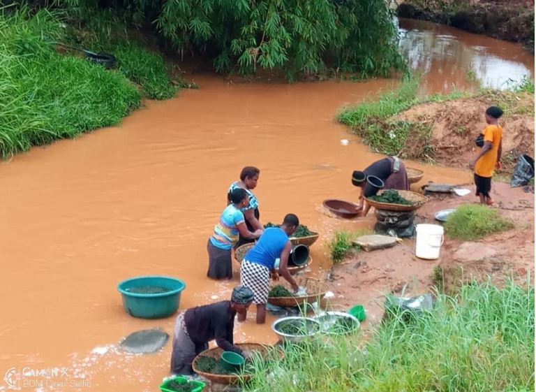 The man saw a group of women washing bitterleaf (used in preparing the popular Onugbu soup in Igboland) with muddy water from a dirty stream in Awka, the Anambra state capital, which they plan to sell in the market.