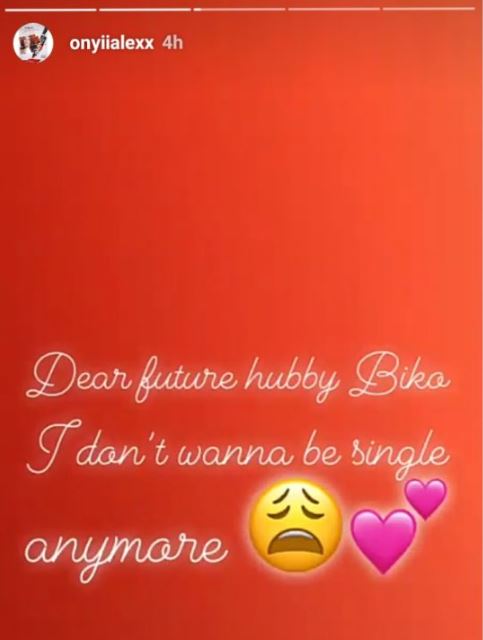"Dear future hubby Biko I don't wanna be single anymore," Alex wrote.