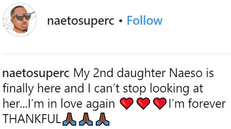 Naeto C took to his Instagram page to share an adorable photo of himself posing with his new bundle of joy and followed up with a cute caption.