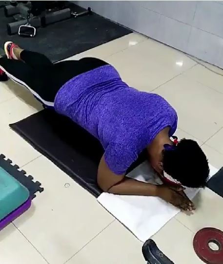 Dolapo Opeyemi Badmus has dropped multimedia contents about herself keeping fit in the gym.