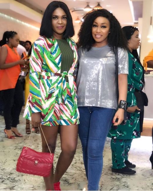 Nollywood actresses Omoni Oboli and Rita Dominic were pictured together in gorgeous outfits at an event in Lagos.