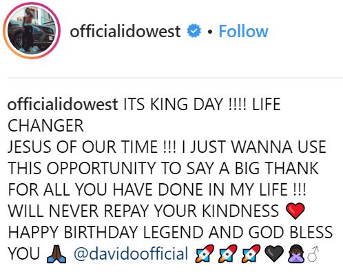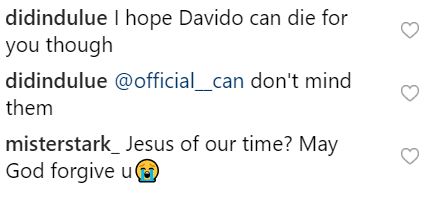 He then followed it up with a caption describing Davido as the 'Jesus of our time', showering him with praises.