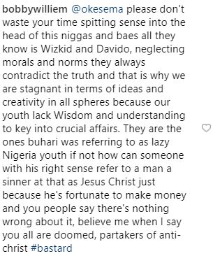 However, many fans of Idowest hotly disagreed with him for calling Davido, the 'Jesus of our time'. Some of them called him out for 'blasphemy' insisting that no matter what any one does, the person should never be compared with Jesus.