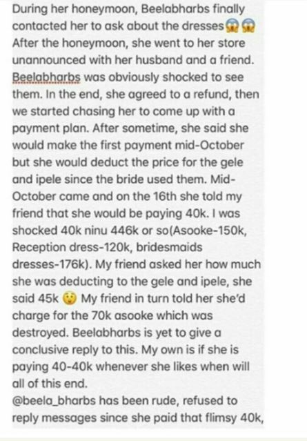 A bride-to-be ordered for a gown for herself and her bridesmaids but what was delivered to her few days before her wedding was a shocker.