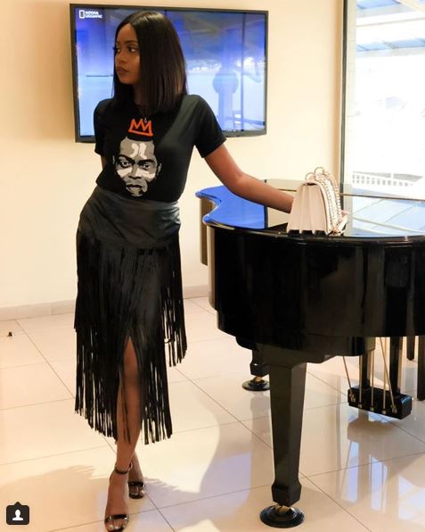 The damsel posed for a picture rocking the photo which was well customized with the image of the late singer.