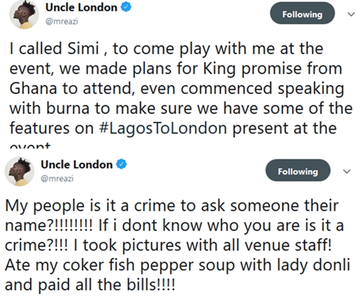 In a series of tweets, Eazi said he got to the event center and did not like the stage he saw there which was different from what he had asked for.
