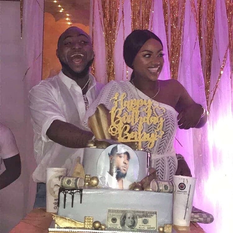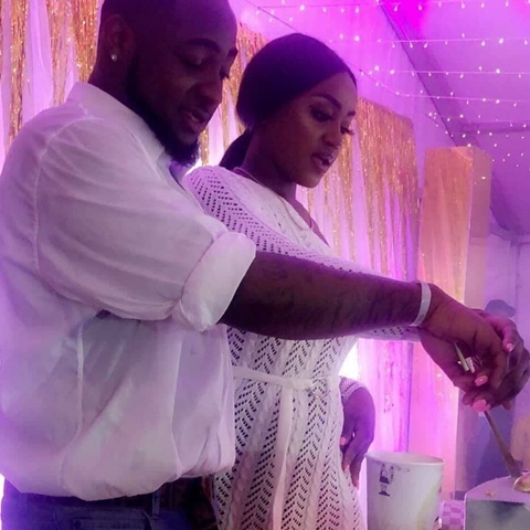 Davido cutting his birthday cake with Chioma