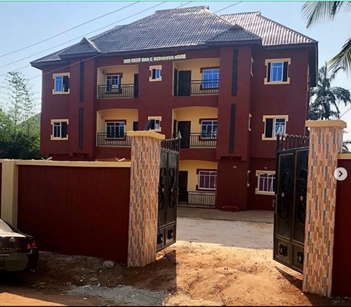 The actor showed off his newly built house, which is a block of six flats and revealed that he is dedicating it to his father. He shared the photos on social media and expressed gladness that his hard work is paying off.