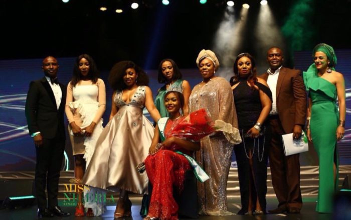 The new Miss Nigeria, Chidinma Leilani Aaron with celebrities after she emerged the new Queen