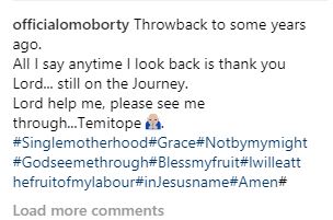 "Lord help me, please see me through...Temitope, " she captioned the picture above.
