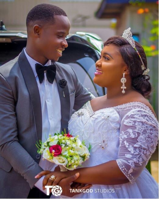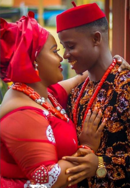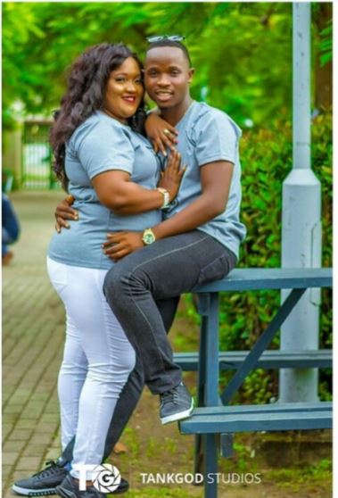 A very young Nigerian man tied the knot with his plus-size bride. The slim body guy used that opportunity to hold the big woman from behind amid smiles.