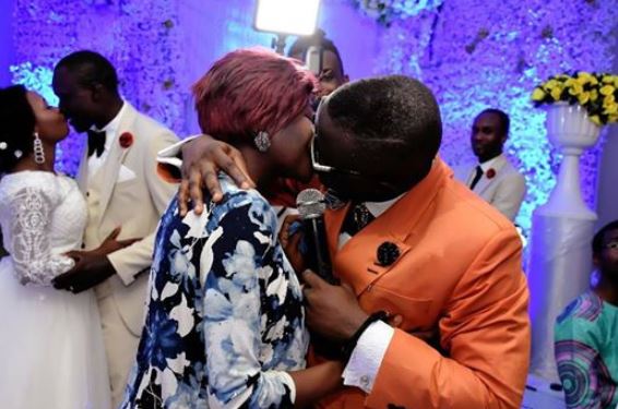 He delivered a short but effective practical lecture to a couple who appeared to shy to kiss each other on their wedding day. After so much reluctance from the couple to kiss, MC Tom called out his own wife who was present at the event and kissed her profusely to inspire the couple of the day.