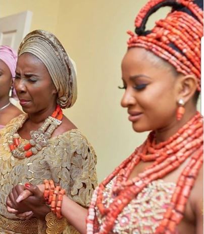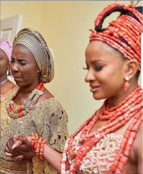 Adesua released the photo below showing herself and her mum apparently praying.