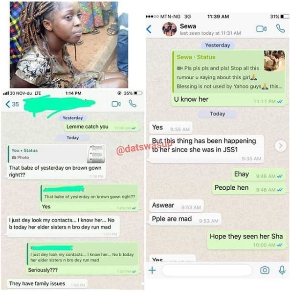 Contrary to viral social media reports that Blessing 'ran mad' after an undefined encounter with 'Yahoo Boys', it appears the situation is deeper that what is seen at surface level.