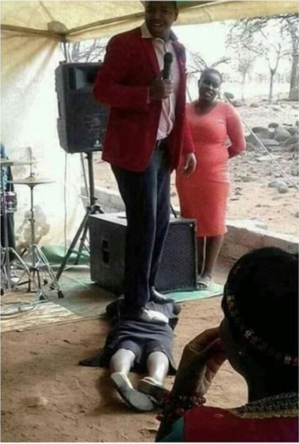 A mind-boggling photo of a supposed church pastor standing on a woman who was lying on the ground has generated ripples on social media.