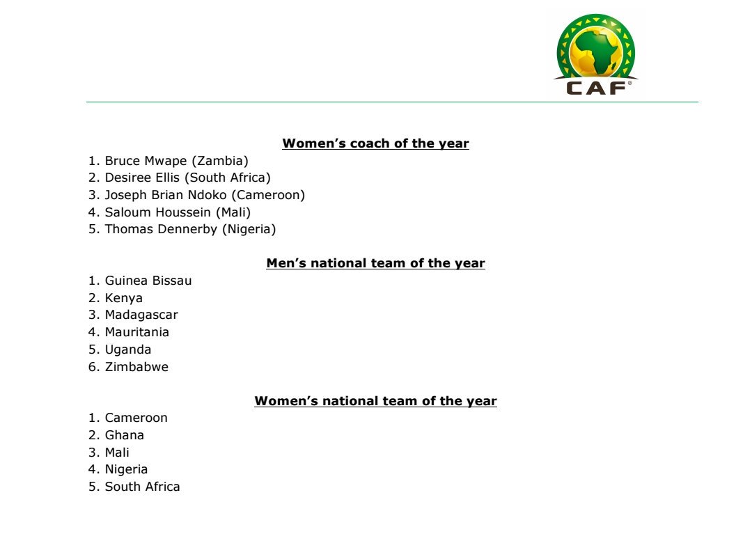 Other categories of the award include; Youth Player of the Year, Men’s Coach of the Year, Women’s Coach of the Year, Men’s National Team of the Year and Women’s National Team of the Year.
