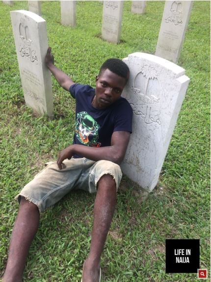 At the Atan Cemetery in Lagos is a young man named Toheeb.
