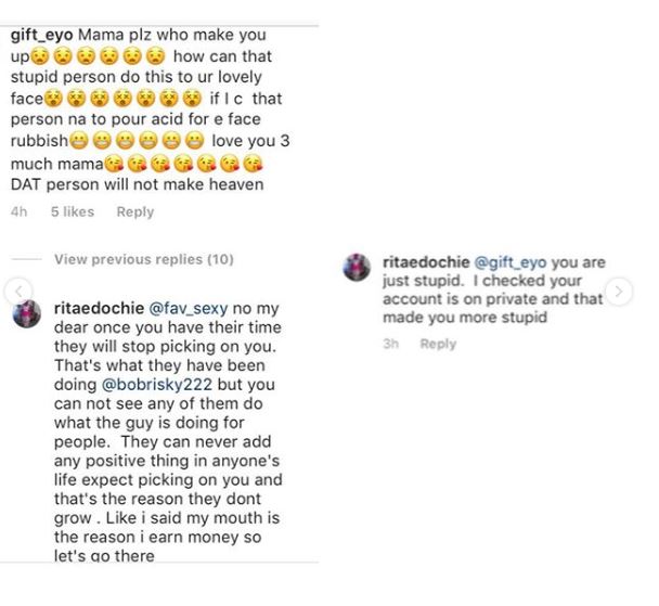 Rita Edochie who has been quietly building her Instagram page was locked in a social media battle with some of her unruly followers.