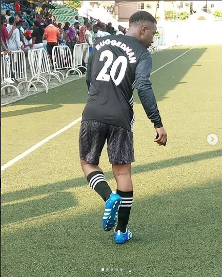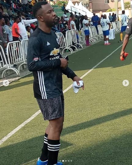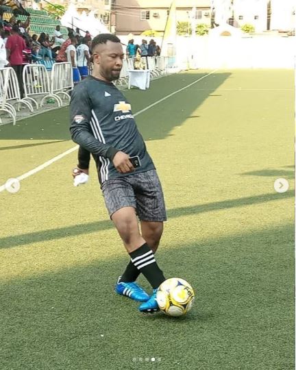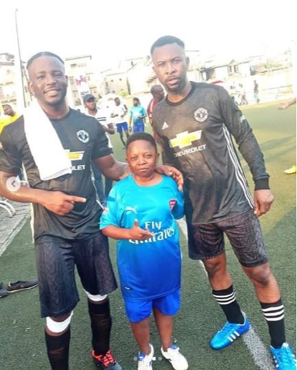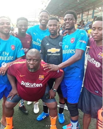 Some Nigerian celebrities have been spotted apparently having a great time playing the beautiful game of football together.