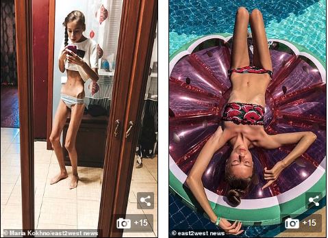 At the time Dasha had reduced to 36 kg (5st 9lbs) and her sister Masha to 40 kg (6st 4lbs).