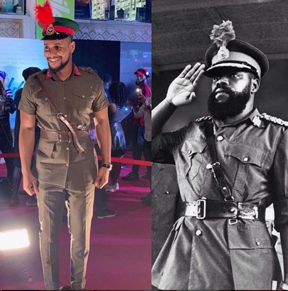 "So I dressed as General Chukwuemeka Odumegwu Ojukwu to the premiere of Power Of I movie. Premiere a fearless leader who stood for what he believed until his death. Pls rate my look, ladies always say they love a man in uniform. Ladies here is your man in uniform" Ekubo captioned the image.
