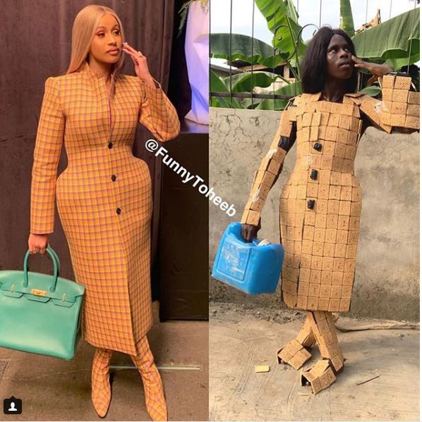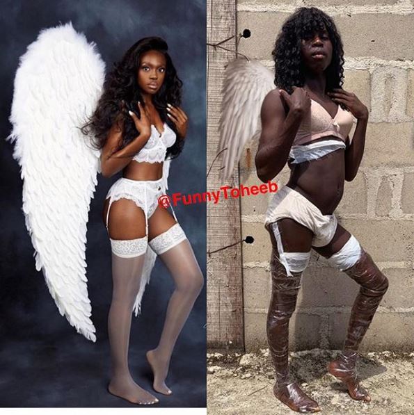 He is making a career out of recreating the pictures of celebrities on Instagram with Rita Dominic, BBNaija's BamBam, Beverly Osu, Cardi B and others being picked on this time around.