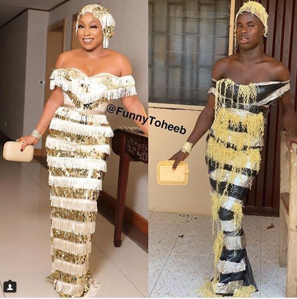 Funny Toheeb is trying to steal the shine of Nollywood actress, Rita Dominic who recently dressed in an impressive way to a social event.