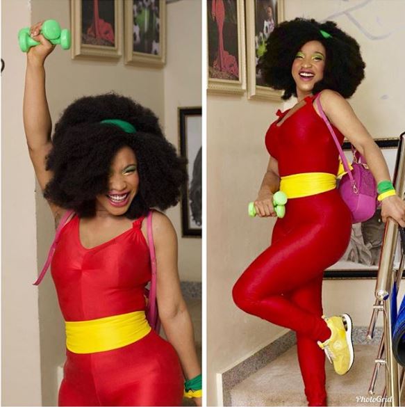 Actress, Tonto Dikeh rocks in old school outfit to son's old school party.