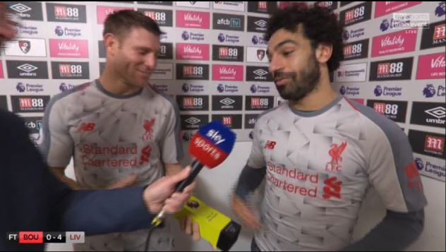 The pair were interviewed after the game, when Salah was awarded a trophy for his outstanding performance.