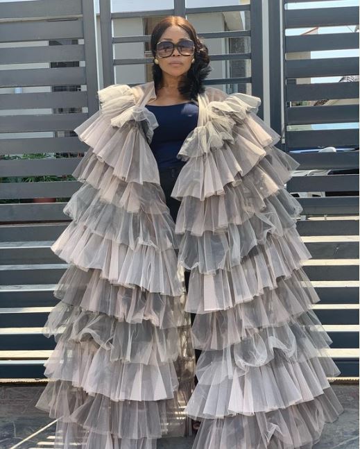 Veteran actress, Shaffy Bello rocks a fabulous hilarious outfit. She slays in a ruffle kimono, looking so exquisite.