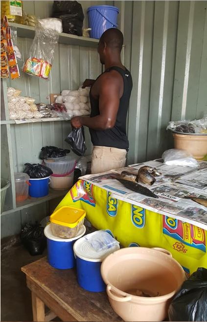 First day i saw him in the container, he was cutting okro for a customer who said she was too busy to do it at home. I walked over and started him in a convo, he told me he didn't find anything wrong with helping the woman he had married and the children God had given them.