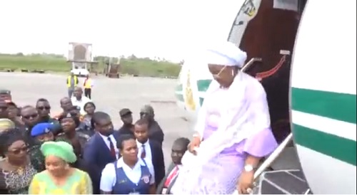 Once normalcy was restored, the aircraft doors were opened once again as Mrs Buhari stepped down to a warm embrace of Mrs Emmanuel who introduced her to other Akwa Ibom women at the airport to receive her.