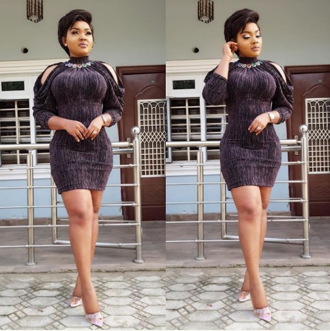 Mercy Aigbe rocks another beautiful cold shoulder gown which hugged her banging body tightly.