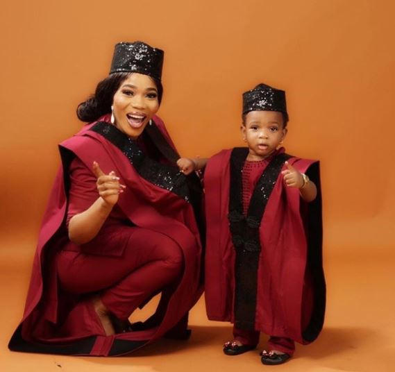 She has dropped some smashing photos of herself and daughter rocking matching agbada outfit to wish herself massive advance for her birthday.