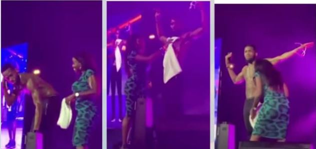 Crowd Goes Gaga As Female Fan Cleans Dbanj's Shirtless Body With Towel On Stage