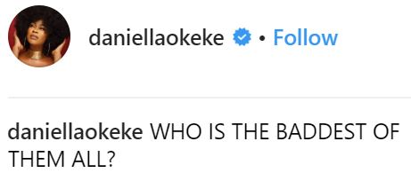 Insinuating that she knows exactly how attractive she is, she captioned the photo: "Who is the baddest of them all?"
