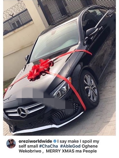 He posted a photo of the new whip and wrote: "I say make I spoil my self small #ChaCha #AbleGod Oghene Wekobriwo , MERRY XMAS ma People."
