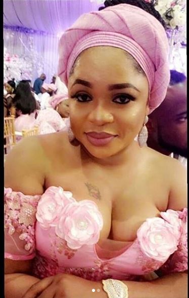 Yoruba actress, Kemi Adesipe got heads turning at a wedding party in Lagos as she paraded a large chunk of her cleavage in a native dress.