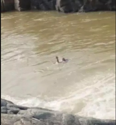 A video on social media shows a person being swept away by the raging waters as he desperately tries to stay afloat. Many people were seen rushing down to the edge of the water body to try and help the man.