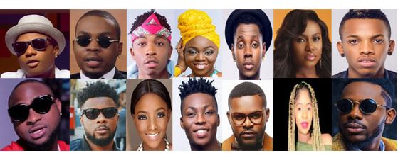Wizkid, Davido, Olamide, Maleek Berry, Mayorkun, Simi, Toby Grey, Reekado Banks , Kiss Daniel, Falz, Niniola , Soti, Tekno and Adekunle Gold