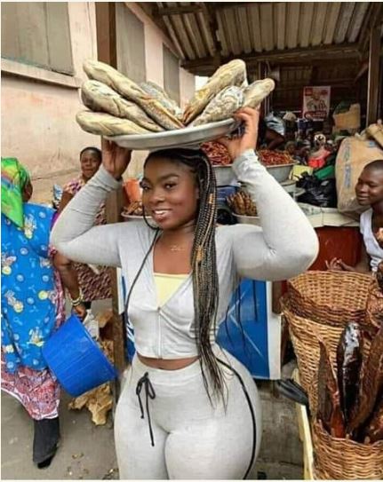 Internet users have been left confused following trending pictures of a young Nigerian lady who reportedly sells fish in the market.