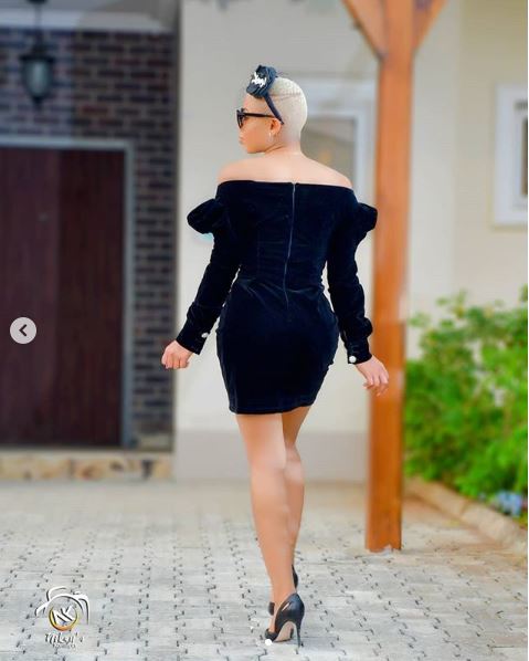 In her new set of photos, BBNaija is seen rocking a black dress complete with cute black shoes and blonde hair.