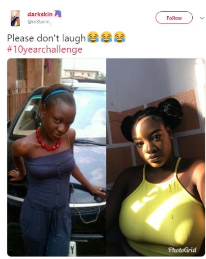 This Nigerian lady who claims to be 22 has got many talking online after she joined the #10yearschallenge by sharing this photo of herself 10 years ago and now.