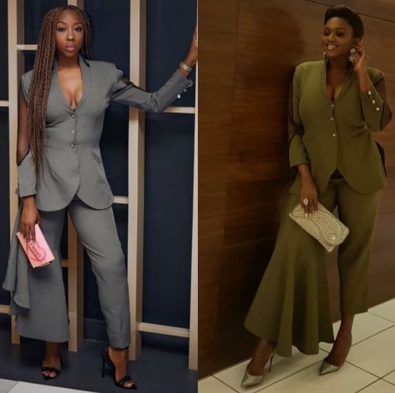 The stylish cleavage-baring corporate outfit was rocked elegantly by the duo, Beverly Naya and Waje Iruobe.
