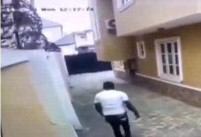 A video has shown the moment a thief scaled a fence to steal inside a home in Lagos. He was recorded by a CCTV in the area.