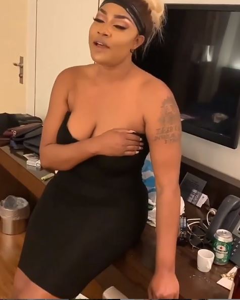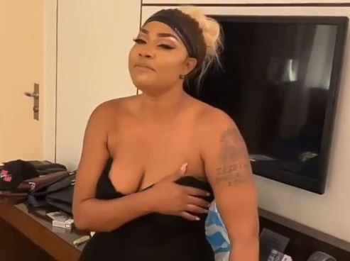 Angela Okorie's luscious boobs were at the huge risk of being fully exposed in front of the camera as she rocked a sultry outfit while singing a gospel song.