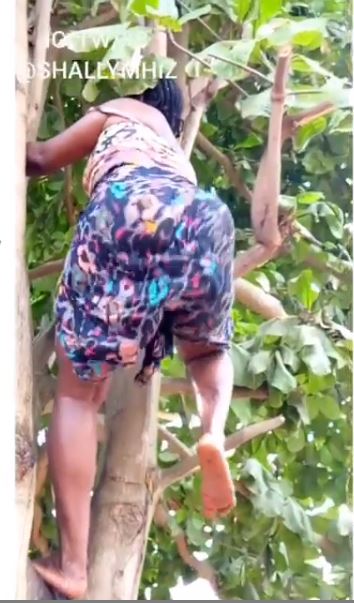 One Shallymhiz from Akwa Ibom State has taken the dance madness to a new height after she climbed a tree and danced on it without her underwear while water was being poured on her to boost her s*x appeal.