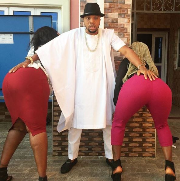 The eccentric Nollywood figure, Charles Okota seems to be up to something crazy as she shared a picture of ladies assumed to be actresses flaunting their bums.