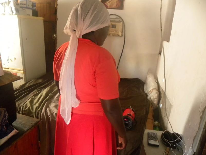 Cynthia Mhlanga in her house in Greenbushes after her husband returned from his nyatsi. Photo by Joseph Chirume