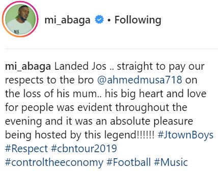 He then wrote: "Landed Jos .. straight to pay our respects to the bro @ahmedmusa718 on the loss of his mum..